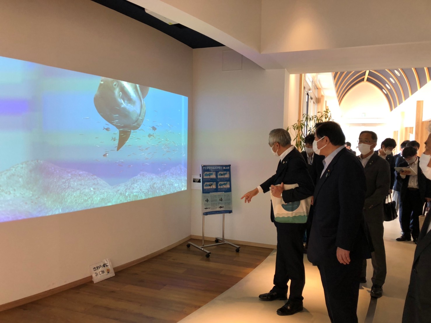 〇 道の駅のテーマは「オール気仙沼」。店舗には気仙沼産の食材や物産品が数多く並び、屋上に設けられたデッキからは大谷海岸の海を一望できる。観光情報コーナーでは、地域のキャラクターであるマンボウを主役としたプロジェクションマッピング「マンボウアクアリム」が投影されている。