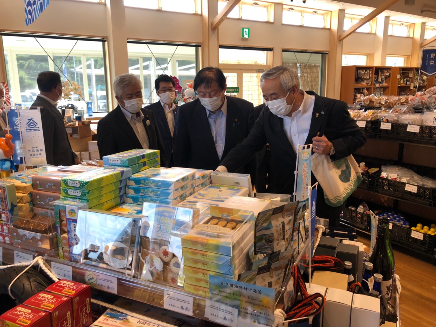 〇大島の玄関口において、島の魅力を発信し、観光客のくつろぎの場としての役割を担う。旬の海産物や農産物が並ぶ地場産品直売所や、浦の浜湾