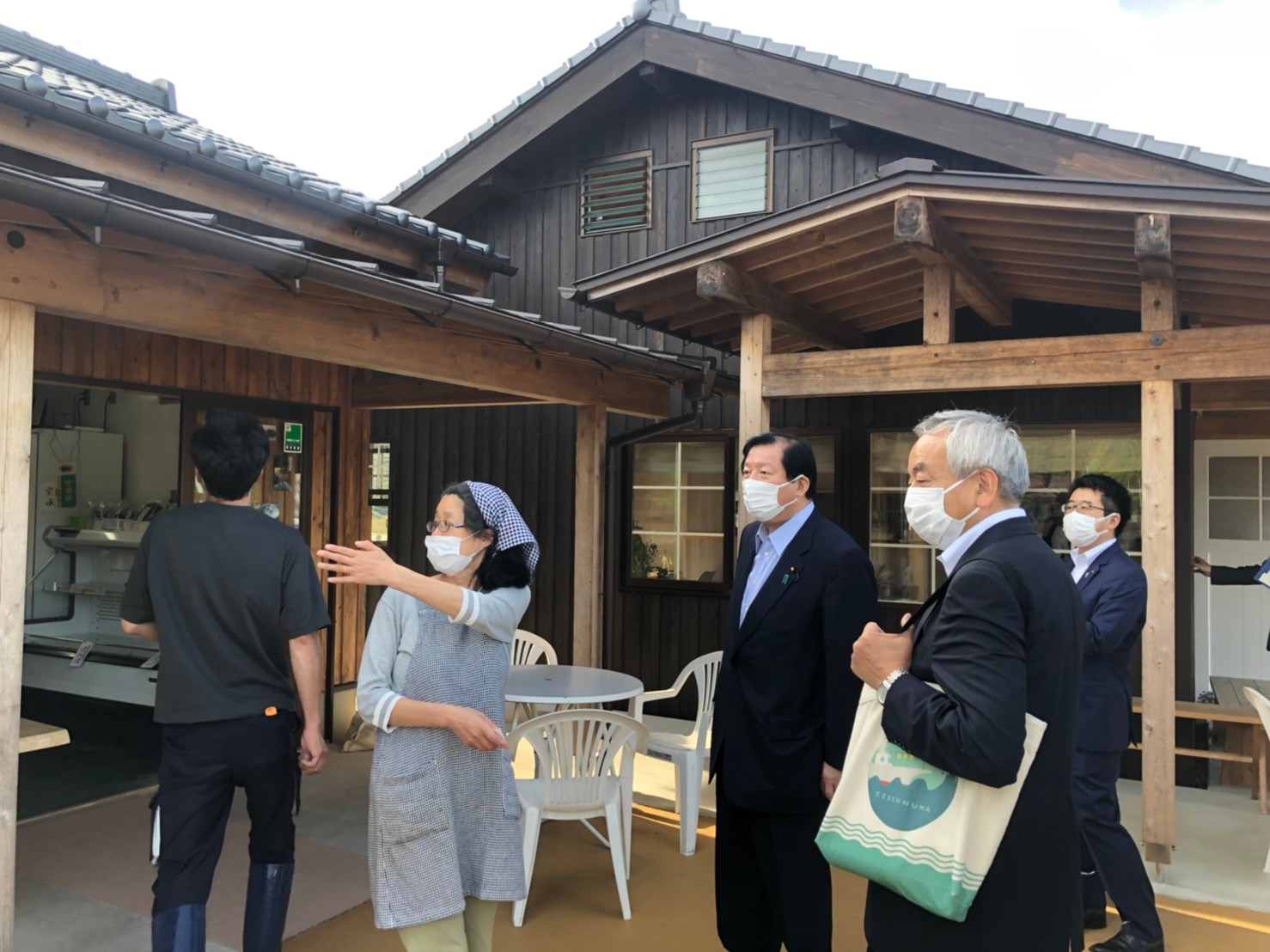 〇隣接する商業施設「野杜海」は敷地内に広がる芝の「野」と、島の緑をイメージさせる「杜」、大島の海からとった「海」にちなみ名づけられ「地産地消」をテーマにカフェや鮮魚店など5店舗が集まる。