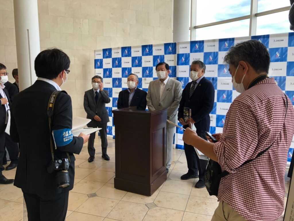 9/22(水)Jヴィレッジ(福島県楢葉町)において、福島県立医科大学が福島復興プロジェクトの成果を活用して開発したIgA抗体マスク(試作品)の贈呈式に出席しました。このマスクは、同大学より日本サッカー協会に8,000枚贈られます。