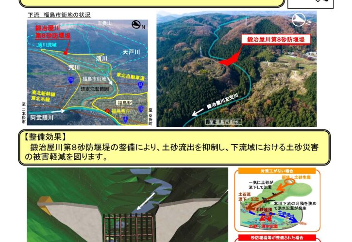 阿武隈川水系 直轄砂防事業(鍛治屋川第8砂防堰堤)についての事業概要は下記の通りとなります。